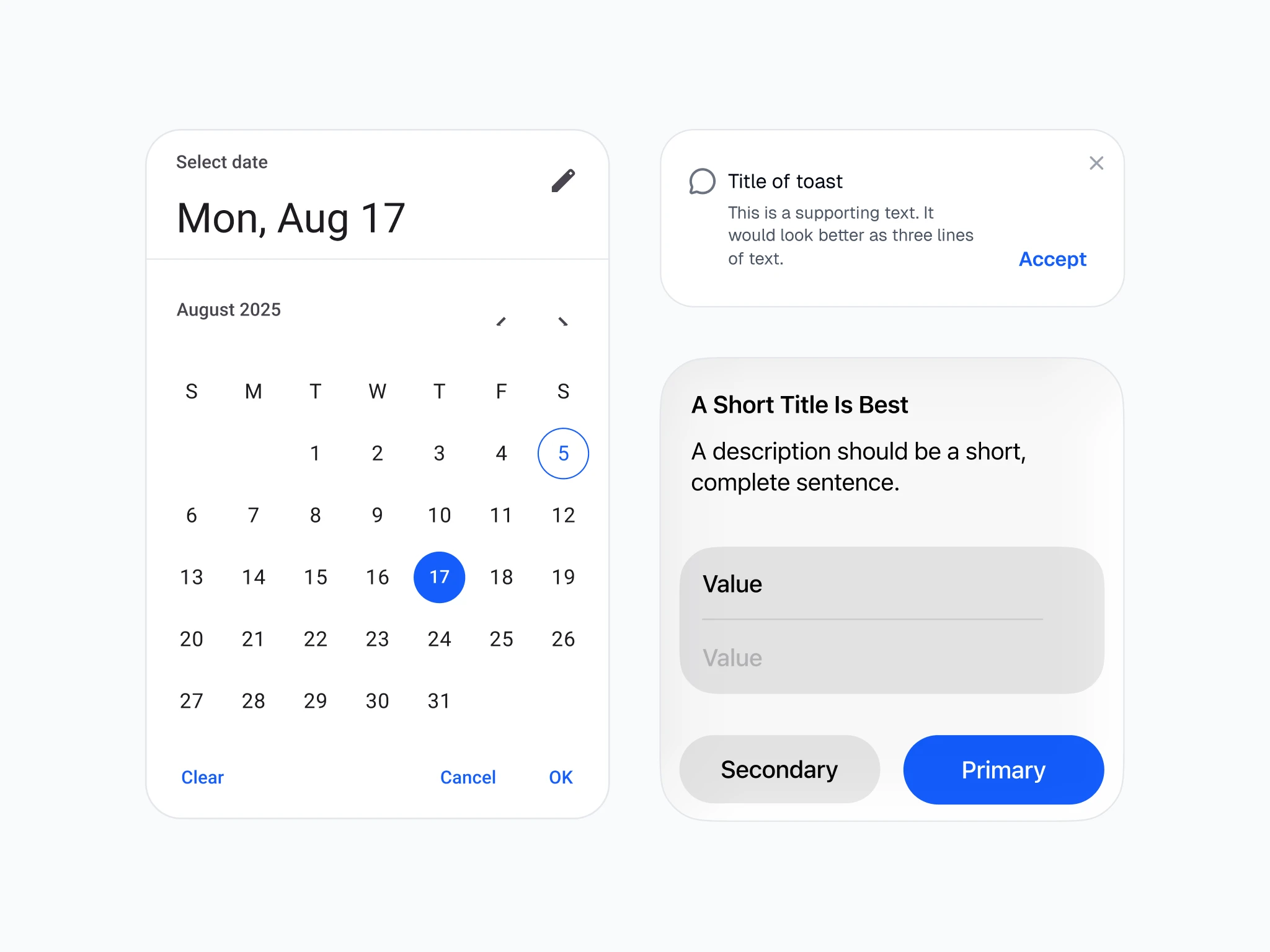 Designed for mobile apps with iOS and Android in mind. Use standalone or alongside native elements.