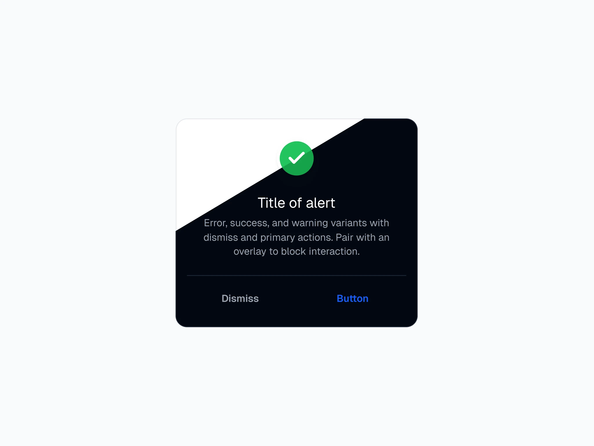 Full dark mode support built into every component through token architecture. One switch, zero rework.